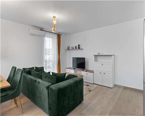 Cu o suprafata utila de 57 mp si un balcon spatios de 8 mp, locuinta este decomandata si complet mobilata. Mobilierul a fost realizat la comanda, iar finisajele sunt atent alese, astfel incat spatiul sa ofere atat confort, cat si personalitate. Bucataria este complet echipata, zona de zi luminoasa si primitoare, iar dormitorul asigura intimitate si relaxare.