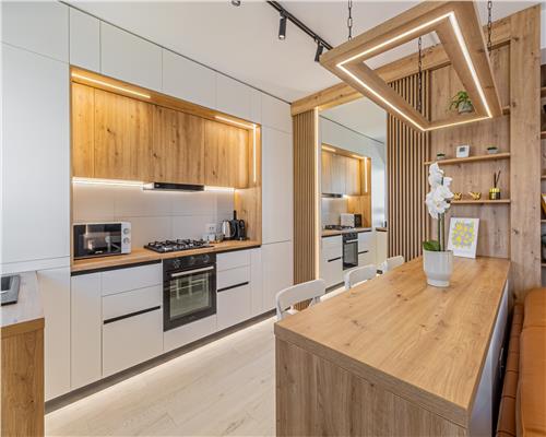 Se închiriază complet mobilat și utilat, exact ca în fotografii. Totul este nou, fără uzură, pregătit pentru mutare imediată.
