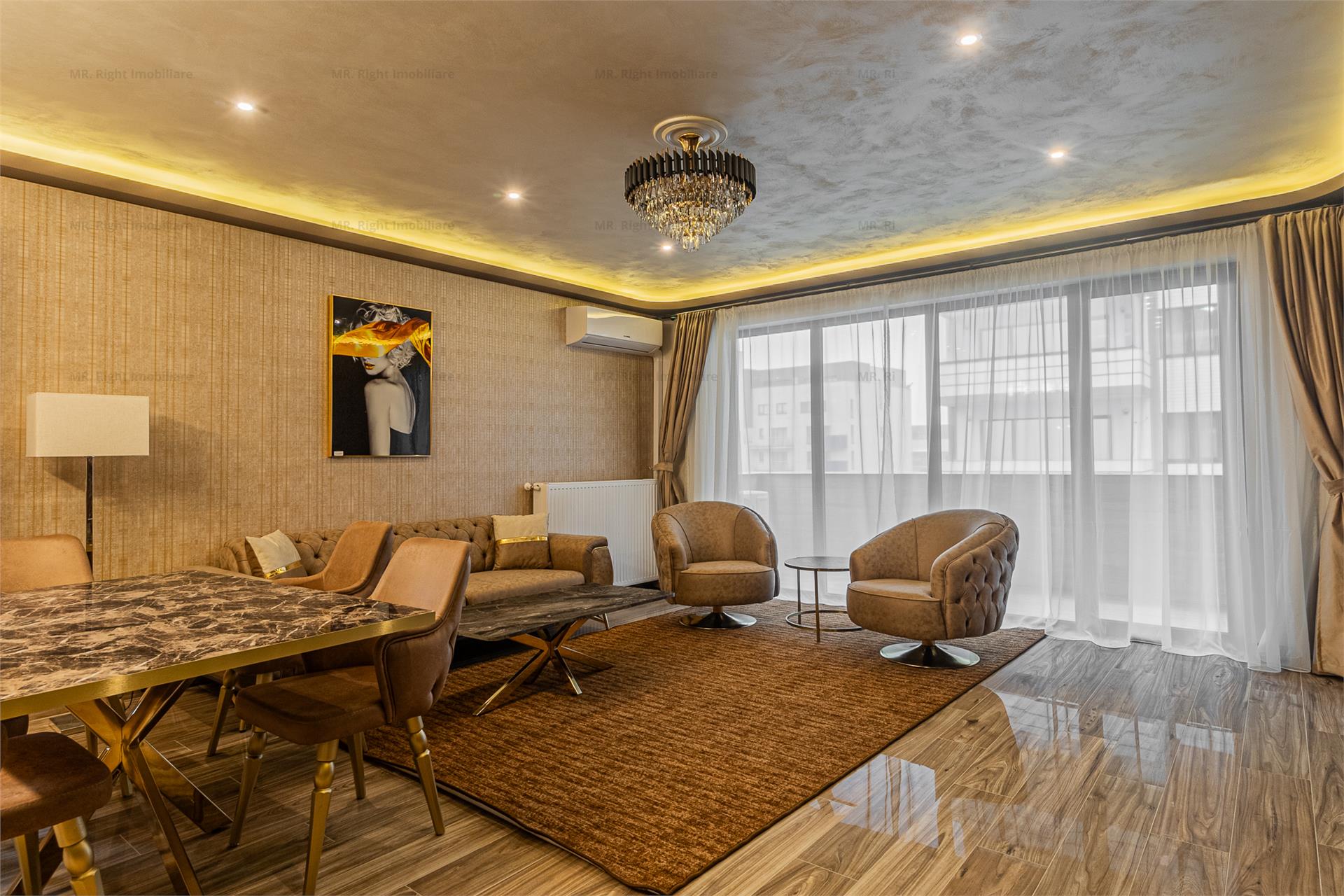 - Dotari: Aer Conditionat Masina rufe Frigider Aragaz Hota Cuptor microunde TV WC Serviciu Dressing Video Interfon Scara interioara Masina vase