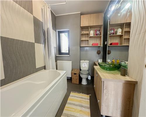 Casa este complet mobilata si utilata pentru confrotul noilor chiriasi: masina de spalat vase, cuptor microunde, cuptor electric, plita pe gaz, hota, masina spalat haine, frigider, tv.